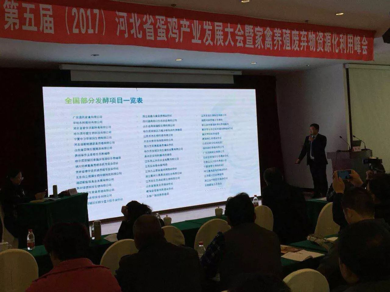 2017年11月23日-24日,由河北省蛋雞產(chǎn)業(yè)體系、河北省畜牧站主辦,石家莊、保定、邯鄲、邢臺(tái)、滄州、唐山、太行山等7個(gè)蛋雞體系綜合試驗(yàn)站等共同承辦的第五屆(2017)河北省蛋雞產(chǎn)業(yè)發(fā)展大會(huì)暨家禽養(yǎng)殖廢棄物資源化利用峰會(huì)在石家莊隆重召開(kāi)。福航環(huán)保做為農(nóng)業(yè)部授牌的“畜禽養(yǎng)殖廢棄物資源化利用種養(yǎng)結(jié)合示范基地”企業(yè),養(yǎng)殖廢棄物資源化處理領(lǐng)域的領(lǐng)軍企業(yè)受邀參會(huì)并做交流報(bào)告。